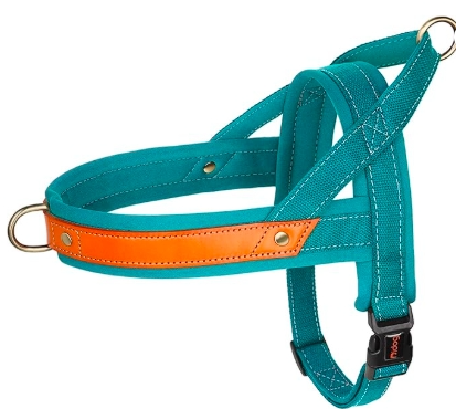- Harnais à attache frontale : L'anneau pour la laisse se trouve sur le devant du harnais, au niveau du poitrail. Quand le chien tire, il est naturellement réorienté vers vous.